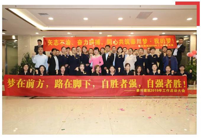 熱烈祝賀陜西秦川建筑工程有限公司“2019年度工作啟動(dòng)大會(huì)”圓滿落幕。秦川建筑全體同仁斗志昂揚(yáng)、迎接新挑戰(zhàn),我們將矢志不渝、齊心協(xié)力、奮力拼搏,同心共筑秦川夢(mèng)·我的夢(mèng),譜寫秦川2019新華章。